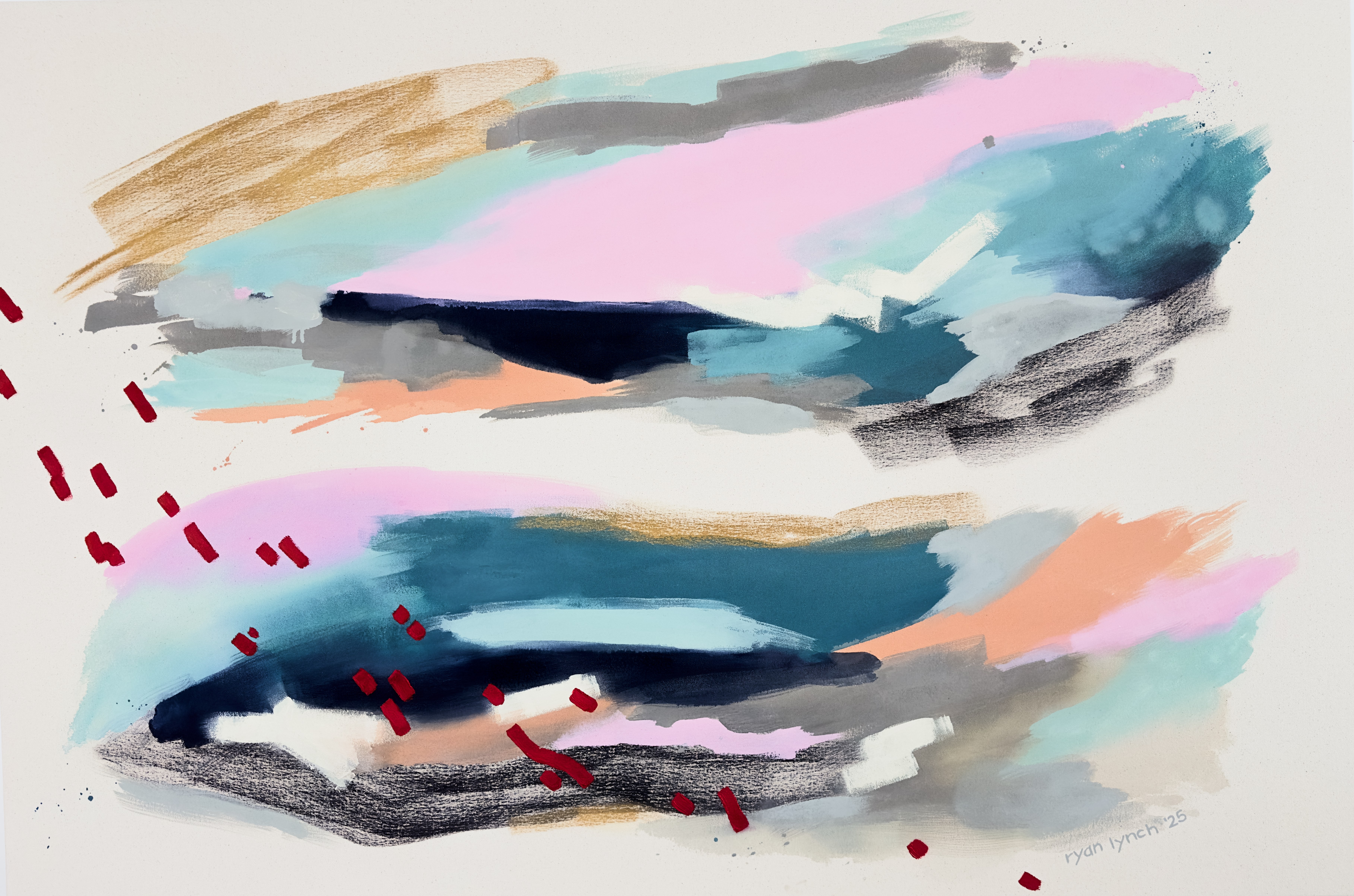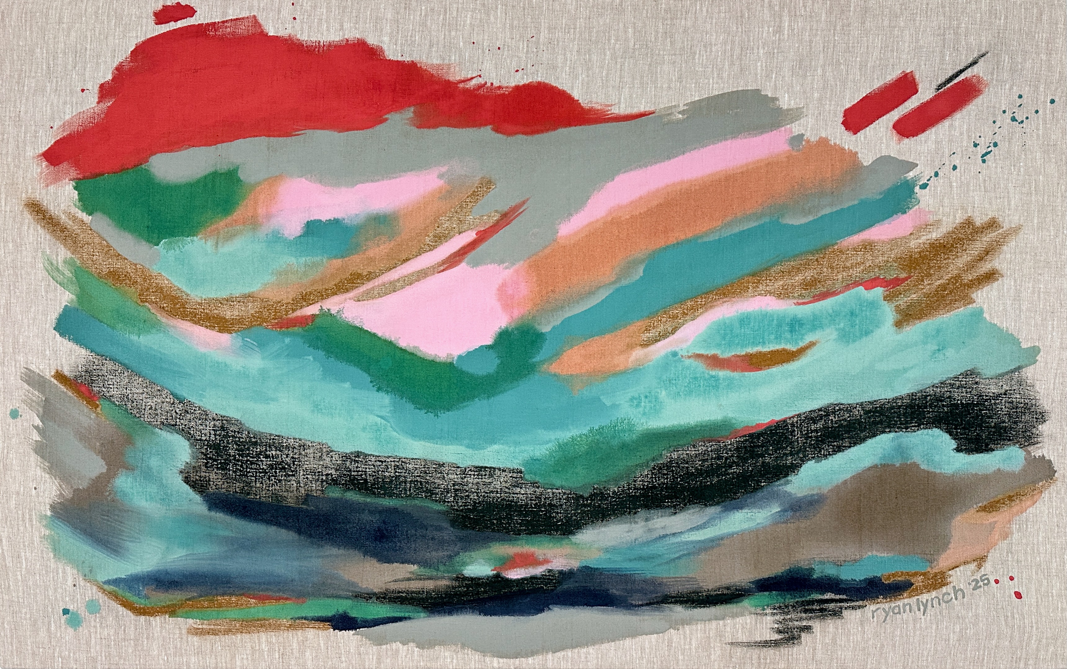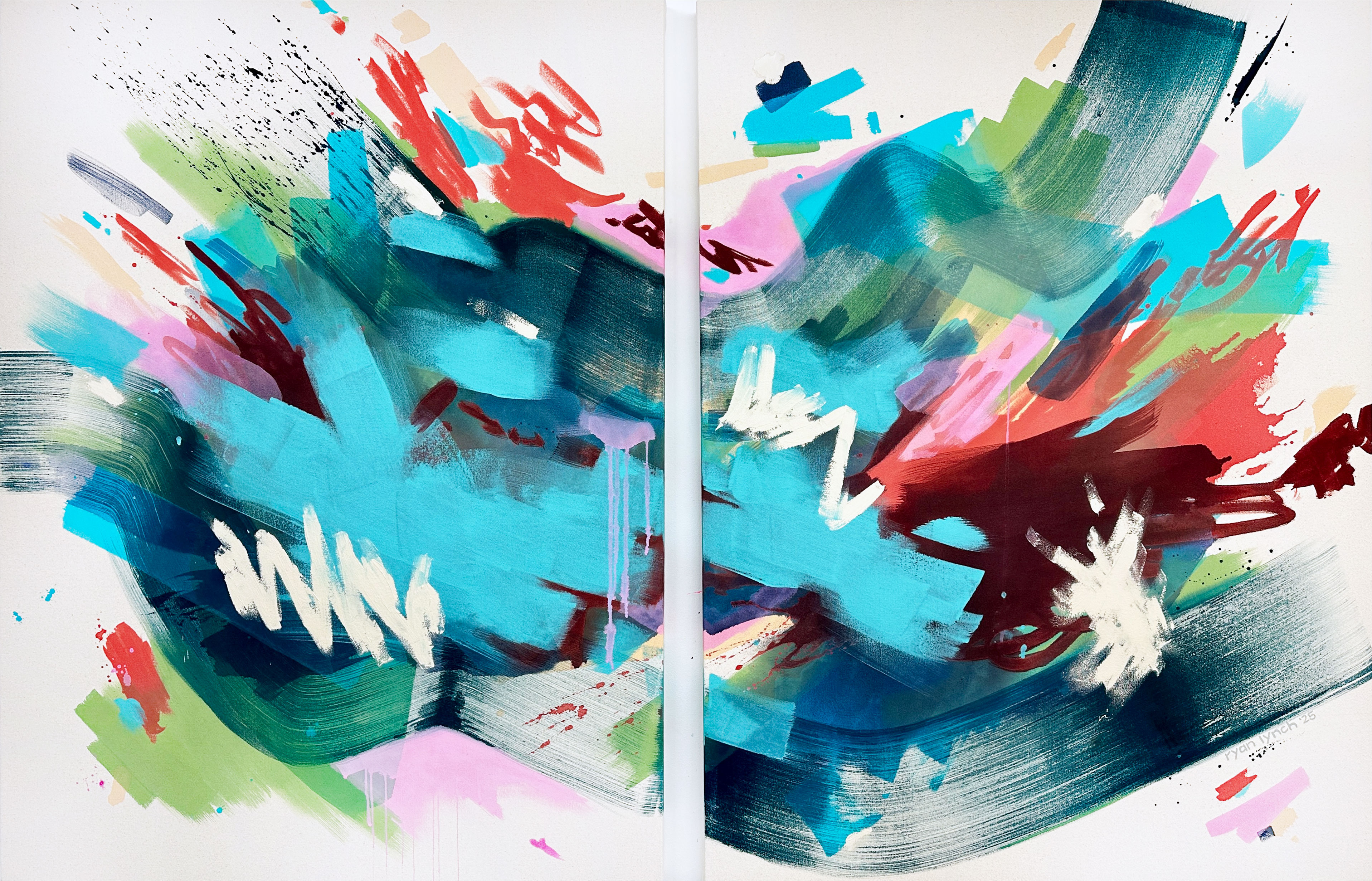 Ryan Lynch, born in Atlanta and based in Mill Valley, CA, is a contemporary painter known for her large-scale, cinematic abstracts that pulse with emotion and unapologetic color. With a background in film and storytelling, she transforms raw feeling into immersive visual experiences that bridge the vivid and the vulnerable.